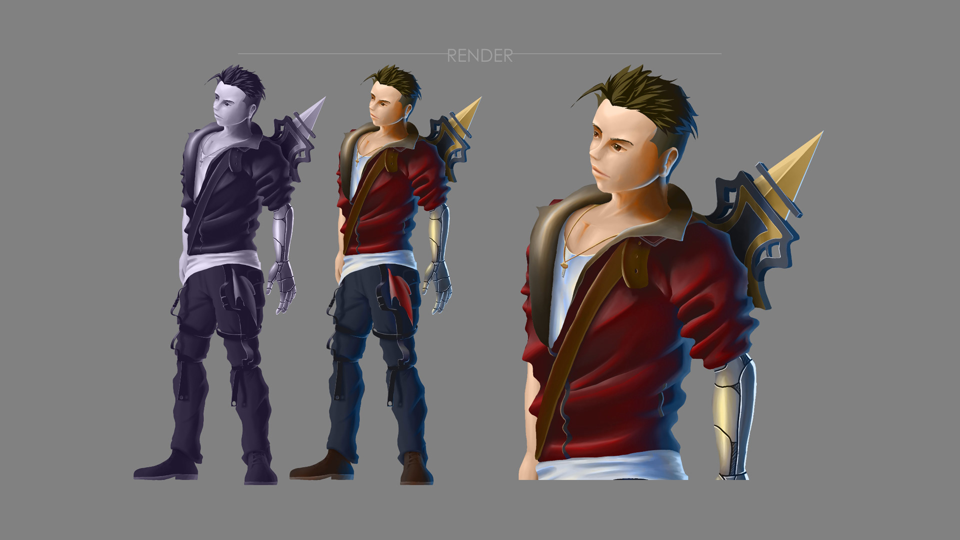 Current phase: Development of concept art for The Academy by Polygonus, focusing on character design for video games.